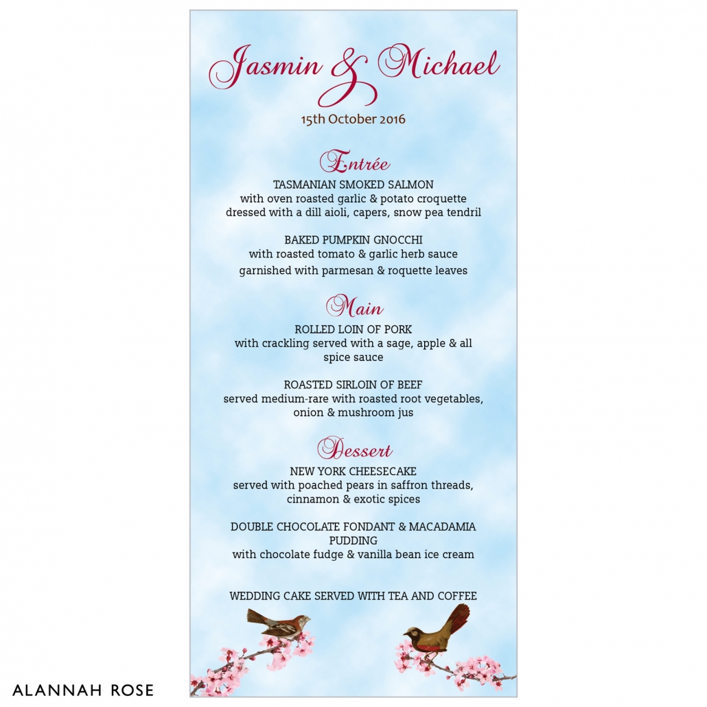Stylish menu cards to tie your wedding theme together. Menu cards are a single DL size card printed to one side only on a 350gsm Satin Deluxe card stock. Shimmer or Textured card stock is available at an additional charge. Menu cards can also have your guest names personalised on them if you would like them to double as place cards. Please select the personalisation option if you require this. Flat size 210x100mm