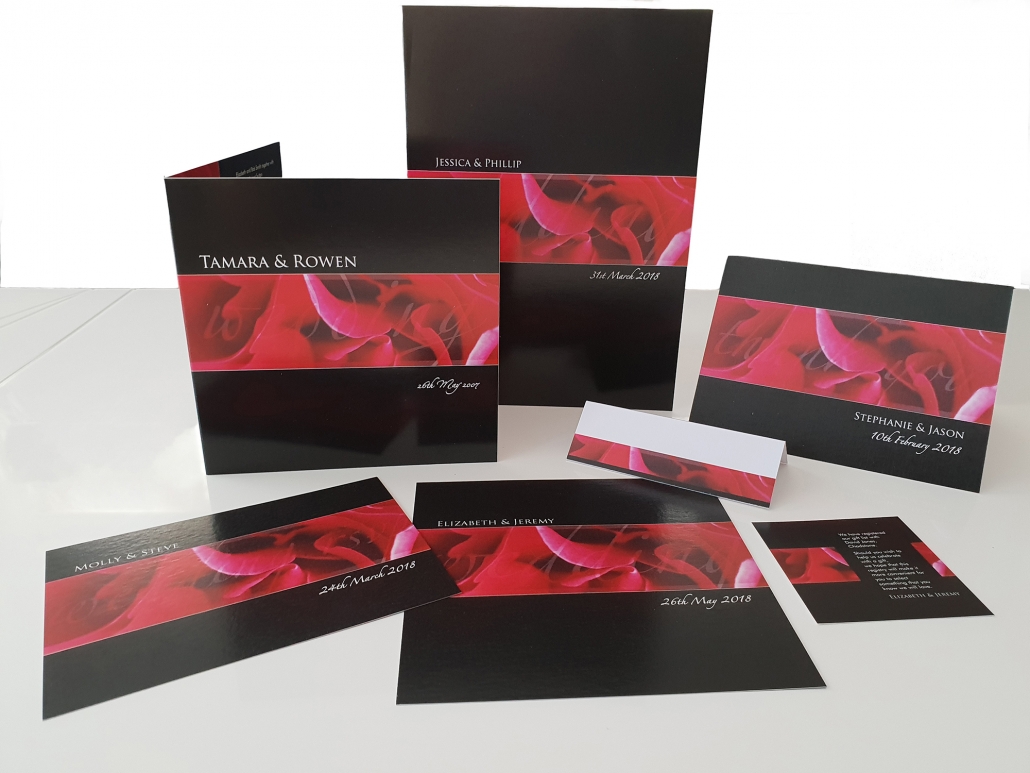 Our sample packs are designed to show you the colours of your requested design printed on the different card stock options (Satin Deluxe, Shimmer and Textured) and the sizes of the available pieces. Where possible, we will supply complete sets of the one design of your request. However, in some instances we may also include pieces of similar designs that may be of interest to you. If you request multiple different designs, you will receive at least one item in the pack of each of your requested designs (maximum of four different designs).