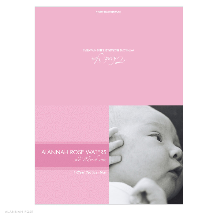 Gorgeous baby thank you cards for your new baby. Announce the arrival of your little one in style! These cards are folding style, printed on a 350gsm Satin Deluxe card stock and come with white envelopes. The inside is left blank for you to write your personal message. A generic message can be printed to the inside of the card for an additional charge. Please select the option below if you would like this.