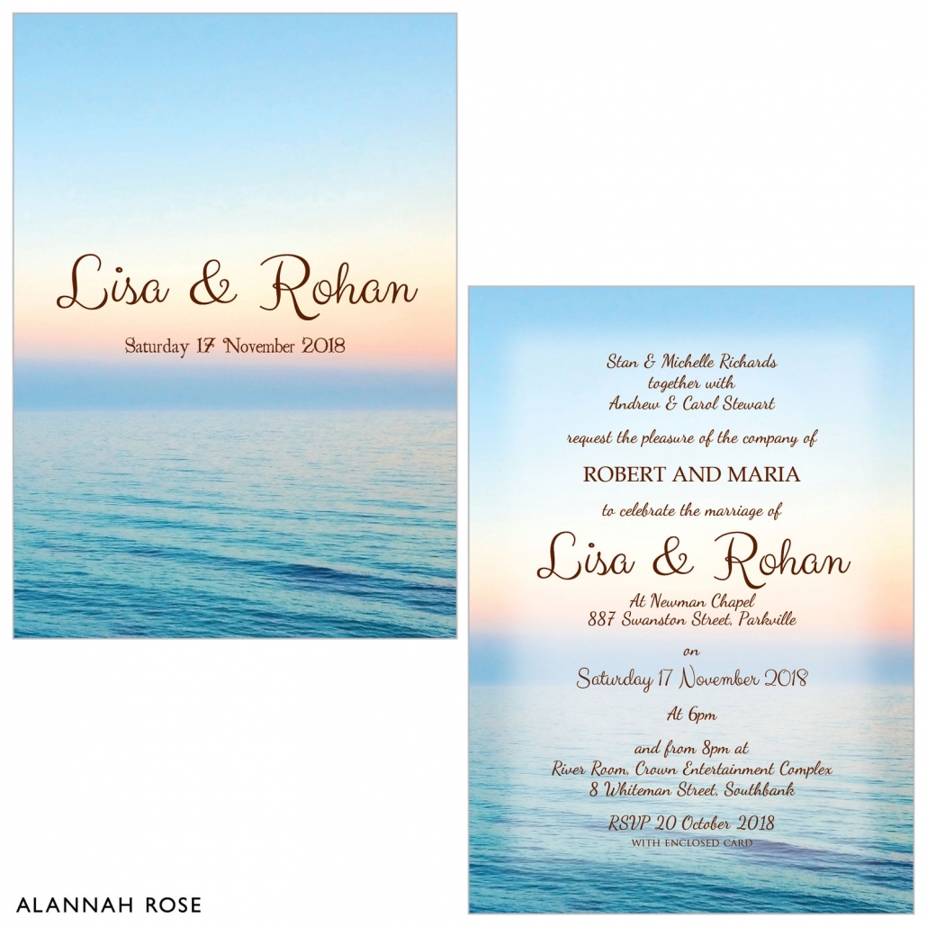 These wedding invitations are a sweet A6 size. They are a flat card printed to both sides and come with white envelopes. Printed on a high quality Satin Deluxe card stock. Shimmer or Textured card stock is available with additional charge. Envelopes are included (smooth white envelopes are provided for Textured card stock). Guest names can be printed on invitations and/or envelopes, please select the personalisation option if you require this. Flat size 148.5 x 105mm.