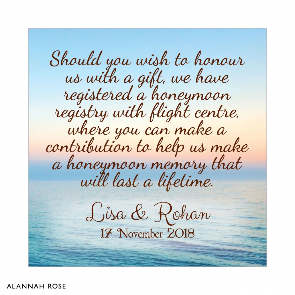 These cards are ideal for those wishing to advise guests of gift or wishing well ideas. They are printed to one side only on Satin Deluxe card stock, and are perfect for slipping into the envelope with the invitation. Shimmer or Textured card stock is available at an additional charge. For those with extra text, we can print to the reverse for an additional charge. Flat size 68 x 68mm