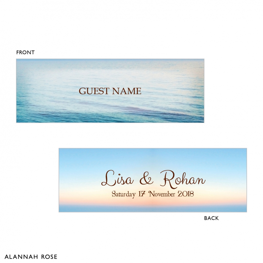 These place cards are the perfect finishing touch to your wedding theme. Our wedding place cards are tent style and are printed to the outer (visible) side only. Printed on a high quality Satin Deluxe card stock. Shimmer or Textured card stock is available at an additional charge. Guest names can be printed on place cards, please select the personalisation option if you require this. Flat size 99.1 x 68mm. Front panel 99.1 x 34mm