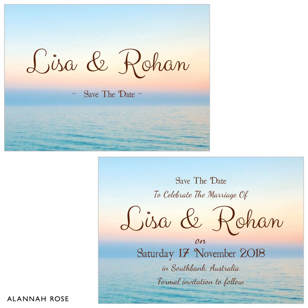 Save the date cards are perfect for announcing the date of your wedding to guests before the formal invitations come out. Our Tropic Oasis save the date cards have the most magical tropical oasis image printed on both sides of high quality Satin Deluxe card stock. Shimmer or Textured card stock also available at an additional charge. Smooth white envelopes included.