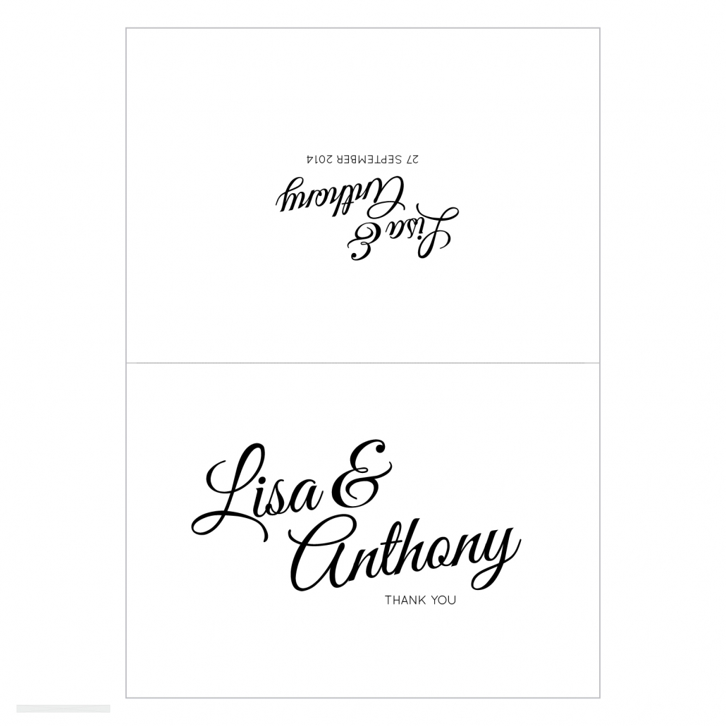 Thank You cards are folding note card style and come with white envelopes. Printed on a high quality Satin Deluxe card stock. Shimmer or Textured card stock is available at an additional charge. Thank You cards are blank inside for you to write your own personal message. Alternatively you can select to have a generic message printed inside for an additional charge. Folded size 140 x 105mm.