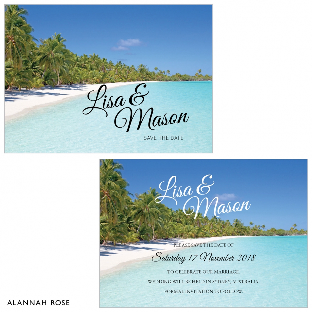 Save the date cards are perfect for announcing the date of your wedding to guests before the formal invitations come out. Our Tropic Oasis save the date cards have the most magical tropical oasis image printed on both sides of high quality Satin Deluxe card stock. Shimmer or Textured card stock also available at an additional charge. Smooth white envelopes included.