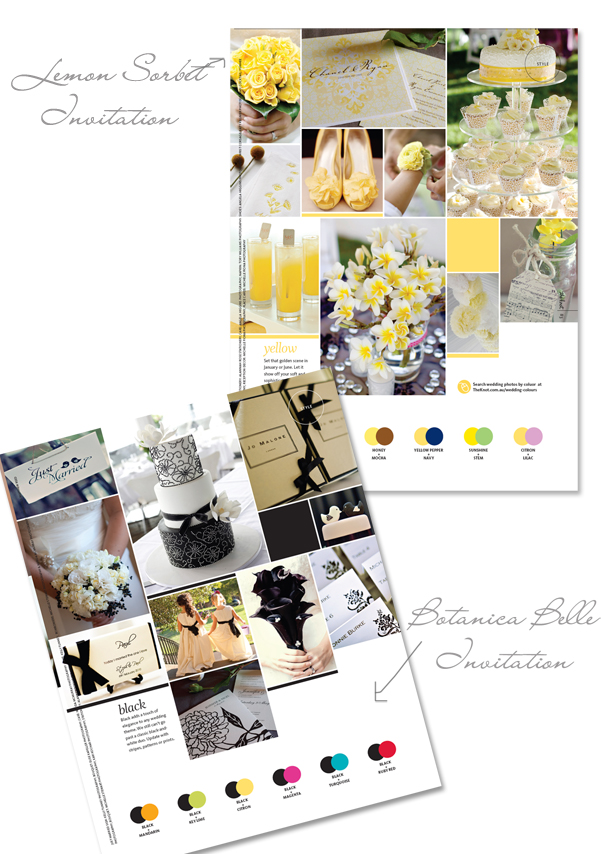 If you look closely you’ll also spy our ‘Lemon Sorbet’ invitation and our “Botanica Belle” Invitation in the “Colour Combos 101” feature!