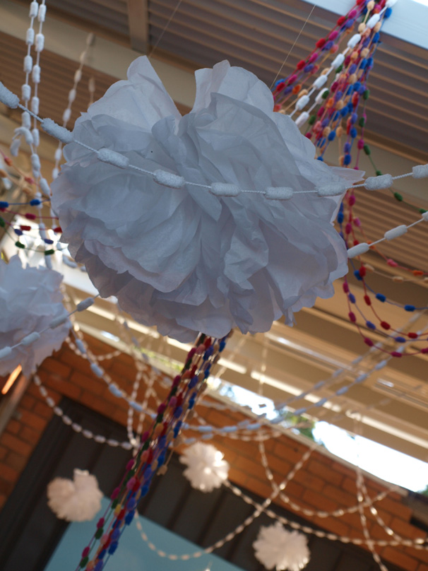 One of my favourite finds for Alannah’s rainbow party was this amazing Snowball Wool. We strung masses of it together and it took on the form of a fluffy rainbow garland- perfect for adorning the dessert table and strung from the rafters over where our six year old guests ate their treats. The best part? You can find it at Lincraft yourself for about $3.50 for 25 yards!