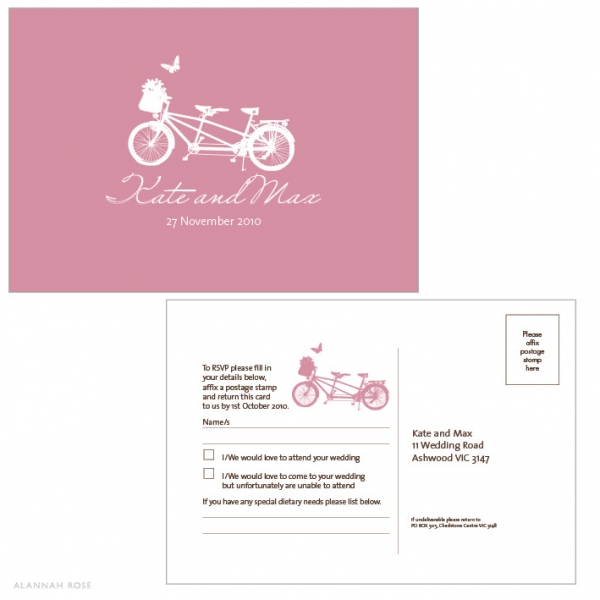 These beautiful RSVP postcards are printed double sided and are an easy and convenient way to have your guests RSVP. All they need to do is fill in their details, place a postage stamp on the back and post it – no envelopes required! Printed on a high quality Satin Deluxe card stock. Shimmer or Textured card stock is available at an additional charge. Flat size 140 x 100mm