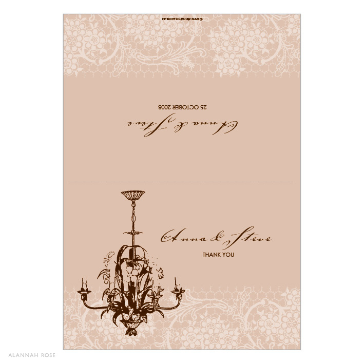 Thank You cards are folding note card style and come with white envelopes. Printed on a high quality Satin Deluxe card stock. Shimmer or Textured card stock is available at an additional charge. Thank You cards are blank inside for you to write your own personal message. Alternatively you can select to have a generic message printed inside for an additional charge. Folded size 140 x 105mm.