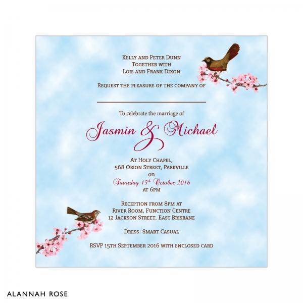 These single sided wedding invitations are sure to leave a lasting impression on your guests. Square card invitation printed to the front side only on a Satin Deluxe card stock. Shimmer or Textured card stock is available at an additional charge. Envelopes are included (smooth white envelopes are provided for Textured card stock). Guest names can be printed on invitations and/or envelopes, please select the personalisation option if you require this. Other colour options are available please see our colour chart for details. Flat size 140 x 140mm.