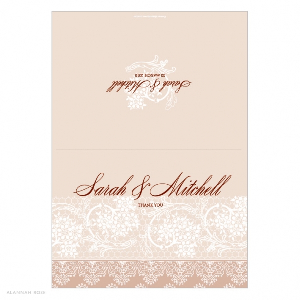 Thank You cards are folding note card style and come with white envelopes. Printed on a high quality Satin Deluxe card stock. Shimmer or Textured card stock is available at an additional charge. Thank You cards are blank inside for you to write your own personal message. Alternatively you can select to have a generic message printed inside for an additional charge. Folded size 140 x 105mm.
