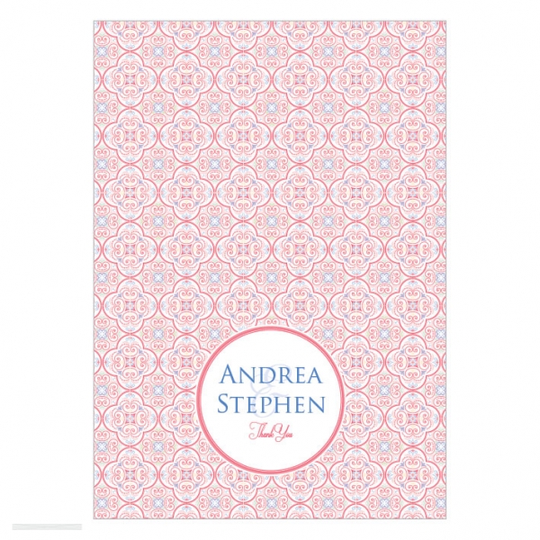 Thank You cards are folding note card style and come with white envelopes. Printed on a high quality Satin Deluxe card stock. Shimmer or Textured card stock is available at an additional charge. Thank You cards are blank inside for you to write your own personal message. Alternatively you can select to have a generic message printed inside for an additional charge. Folded size 140 x 105mm.